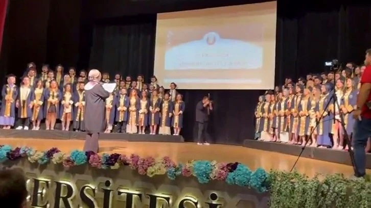 Söz konusu bölümün Dekan Yardımcısı Tuba Gül tarafından okunduğu sırada öğrenciler, çıkarılan kısımları ekleyerek hep bir ağızdan söylediler. Bunun üzerine veliler alkışlarla öğrencilere destek verdi.