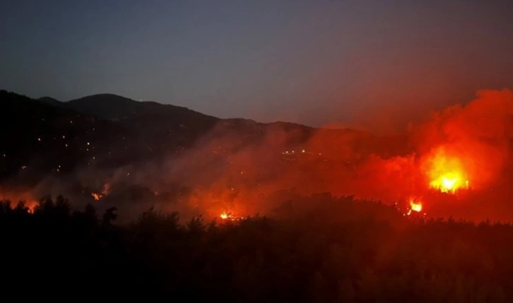 Yangına gündüz 6 uçak, 8 helikopterle havadan müdahale edildi.