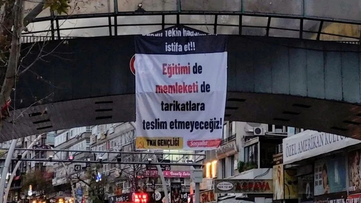 Türkiye Komünist Hareketi Gençliği (TKH Gençliği) ve Sosyalist Liseliler Ankara'da Milli Eğitim Bakanlığı önünde Bakan Tekin'e, "Eğitimi de memleketi de tarikatlara teslim etmeyeceğiz. Bakan Tekin haddini bil, istifa et!" yazılı pankartla cevap verdi.