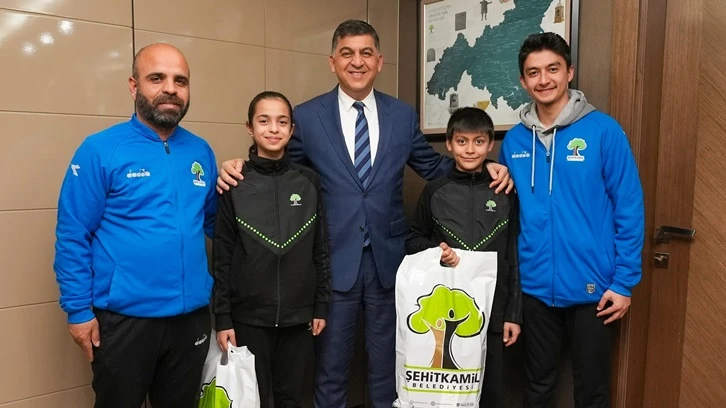 13 Yaş Altı Türkiye Şampiyonası’nda elde ettikleri başarılı sonuçların ardından Milli Takım sporcusu olmayı başaran Buğlem Koyuncu ile Talha Akdağ, katkılarından ötürü Şehitkamil Belediye Başkanı Rıdvan Fadıloğlu’nu makamında ziyaret ederek, teşekkür ettiler.