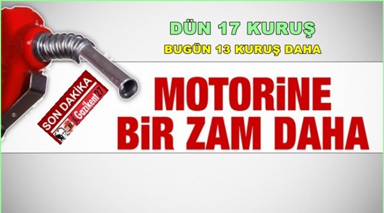 Dün 17 kuruş zamlanan motorinin litre fiyatına bu gece yarısından itibaren 13 kuruşluk yeni bir zam yansıtılacak.
