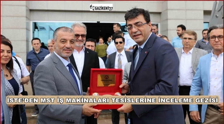 Türkiye’nin önemli iş makinaları markalarından MST tesislerinde yaptıkları geziden memnun ayrıldıklarını belirten Rektör Prof. Dr. Dereli, ziyaret anısına Konukoğlu’na plaket ve armağan takdim etti.