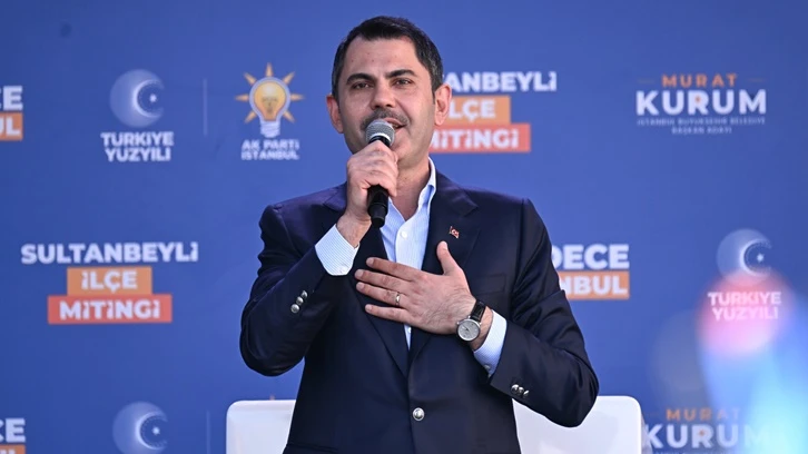 Sultanbeyli'de AKP'den aday olan Hüseyin Keskin'in yönettiği bölge için destek isteyen Kurum, kalabalığa "Sultanbeyli'de fetret devrine son veriyor muyuz?" diye sordu.