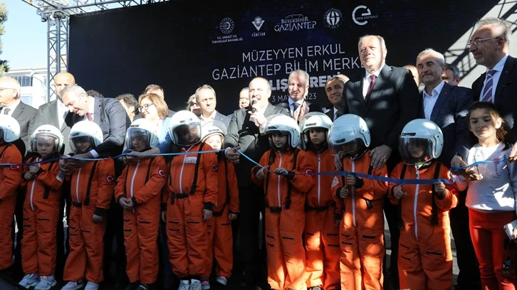 Sanayi ve Teknoloji Bakanı Mustafa Varank, ülkenin bilim ve teknoloji alanındaki yükselişine ivme kazandıracak her yatırımın çok değerli olduğunu vurgularak, “Bilim merkezinin hayata geçmesi için elini taşın altına koyan herkese teşekkür ederim. Erkul ailesine teşekkürlerimi sunuyorum. Buraya gelen her bir evladımız gelecekte buradan çıkacak Aziz Sancarlar diyecek ki Müzeyyen Erkul hanımefendinin vesilesiyle bir bilim merkezi yapıldı. Bizim gündemimiz tek; bilim, teknoloji, sanayi ve inovasyon. Bizim amacımız geleceğimiz evlatlarımızı geleceğin teknolojileriyle yetiştirebilmek. Müzeyyen Erkul Gaziantep Bilim Merkezi, öğrencilerimizin bilim ve teknolojiye olan ilgisini artırarak geleceğin bilim insanlarını yetiştirmemize yardımcı olacak. Burada öğrencilerimiz deneyler yaparak öğrendiklerini somutlaştırabilecekler. Bilim ve teknoloji alanında özgün çalışmalar yapabilecekler. Bu ortamları onlara sağlayacağız” diye konuştu.