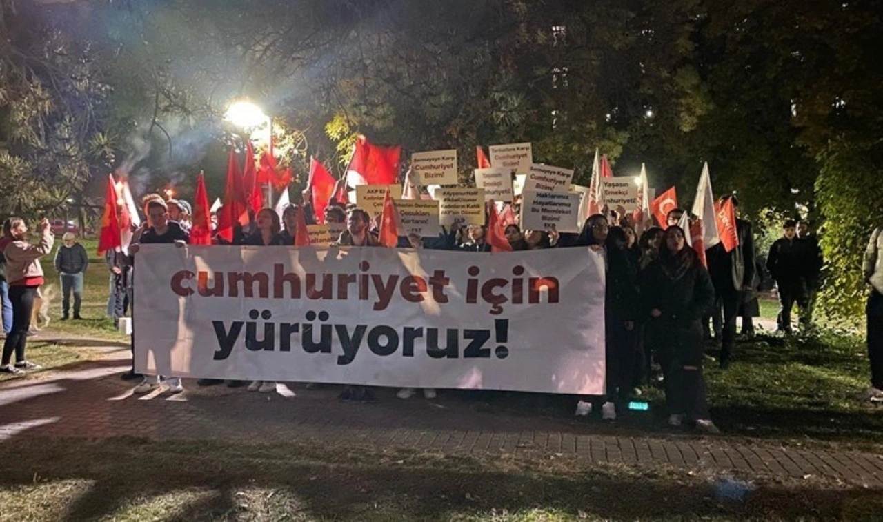 Orta Doğu Teknik Üniversitesi (ODTÜ) öğrencileri, bugün 20.00'de, Cumhuriyetin 101. yılı nedeniyle "Cumhuriyet Yürüyüşü" düzenledi. Yürüyüş, yerleşke içerisinde yer alan Yurtlar Bölgesi'nde yoğun bir katılımla başladı.