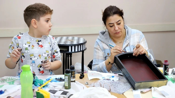 Ara tatili, anneleriyle birlikte Şehitkamil Belediyesi Dekoratif Ahşap Boyama Kursu’na katılarak değerlendiren öğrenciler; anneleriyle birlikte ahşap boyadı, atık malzemeleri geri dönüştürerek tekrar kullanılabilir hale getirdi.