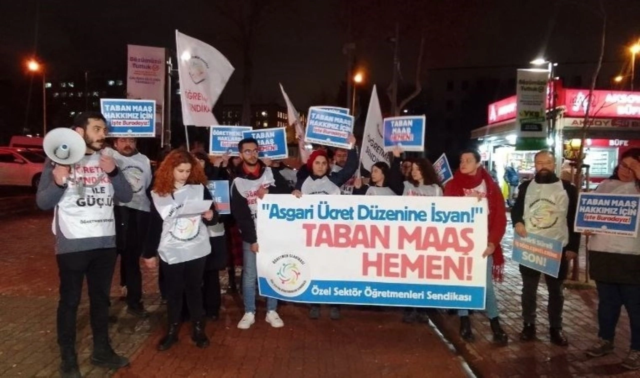 Özel okul öğretmenleri "taban maaş" isteğiyle seslerini Ankara'dan duyurmaya çalıştı. Madenciler Anıtı önünde toplanan, asgari ücret ve onun altında maaşa çalıştırılan öğretmenler "Asgari ücrete Mehmet Şimşek geçinsin" sloganı attı.