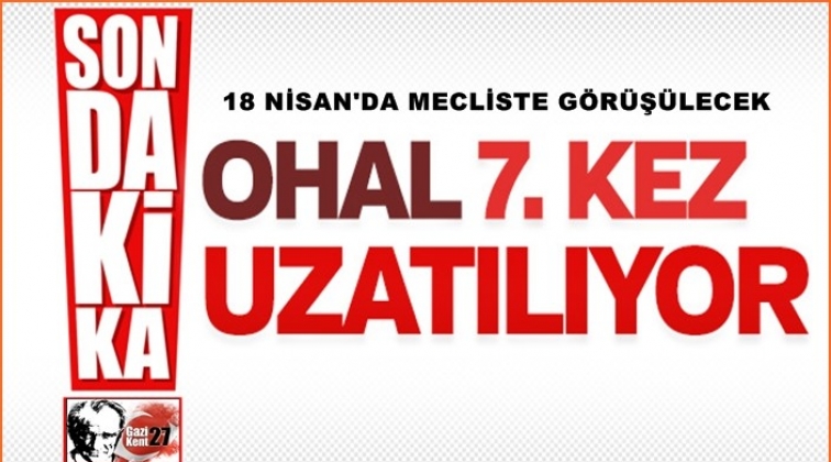 OHAL'in uzatılması 18 Nisan çarşamba günü Meclis'te görüşülecek.