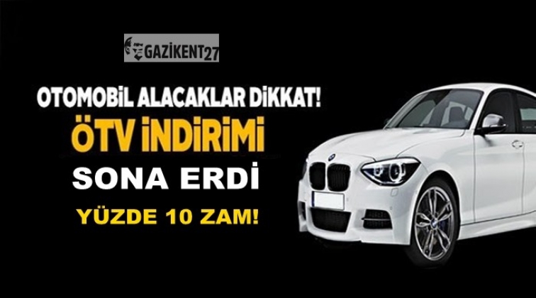 Motor hacmi 1.6 litre altında kalan otomobillere uygulanan 15 puanlık ÖTV indirimi sona erdi. Sektör, indirimin devam ettirilmesi talebinde bulunurken hükümetten bu yönde bir açıklama henüz yapılmadı. İndirimin sona ermesiyle sıfır otomobil fiyatlarında ortalama yüzde 10'luk bir artış yaşanacak.