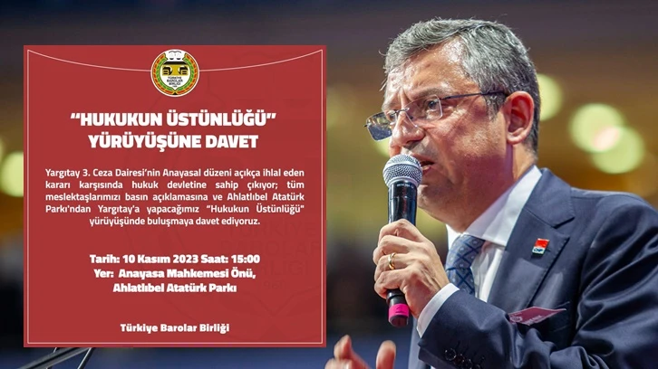 CHP Genel Başkanı Özgür Özel, Yargıtay 3. Ceza Dairesi'nin Can Atalay kararı ve AYM üyeleri hakkında suç duyurusunda bulunmasıyla yaşanan yargı krizi üzerine eylem kararı alan Türkiye Barolar Birliği'nin yarın Ankara'da düzenleyeceği Hukukun Üstünlüğü yürüyüşüne katılacaklarını açıkladı.