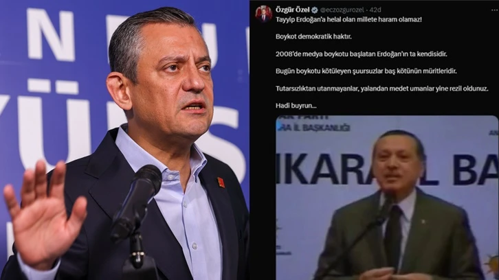 CHP Genel Başkanı Özgür Özel, "Tayyip Erdoğan’a helal olan millete haram olamaz! Boykot demokratik haktır. 2008’de medya boykotu başlatan Erdoğan’ın ta kendisidir. Bugün boykotu kötüleyen şuursuzlar baş kötünün müritleridir" açıklamasında bulundu.