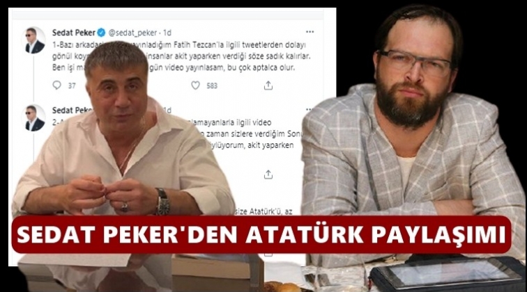 Suç örgütü lideri Sedat Peker, Atatürk'e yönelik ifadeleriyle tepki çeken gerici Fatih Tezcan hakkında "Bazı arkadaşlar dün yayınladığım Fatih Tezcan’la ilgili tweetlerden dolayı gönül koymuşlar. Namuslu insanlar akit yaparken verdiği söze sadık kalırlar. Ben işi magazine döküp her gün video yayınlasam, bu çok aptalca olur." ifadelerini kullandı.