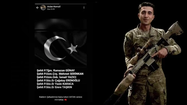 Elazığlı Piyade Sözleşmeli Er Kemal Aslan, Pençe-Kilit Harekatı bölgesinde çıkan çatışmada şehit düştü. Ancak asıl yürek burkan detay, Aslan'ın şehit düşmeden bir gün önce silah arkadaşları için yaptığı ve "Rabbim şehadetinizi kabul etsin. Vatan sizlere minnettar" yazılı WhatsApp durumu oldu.