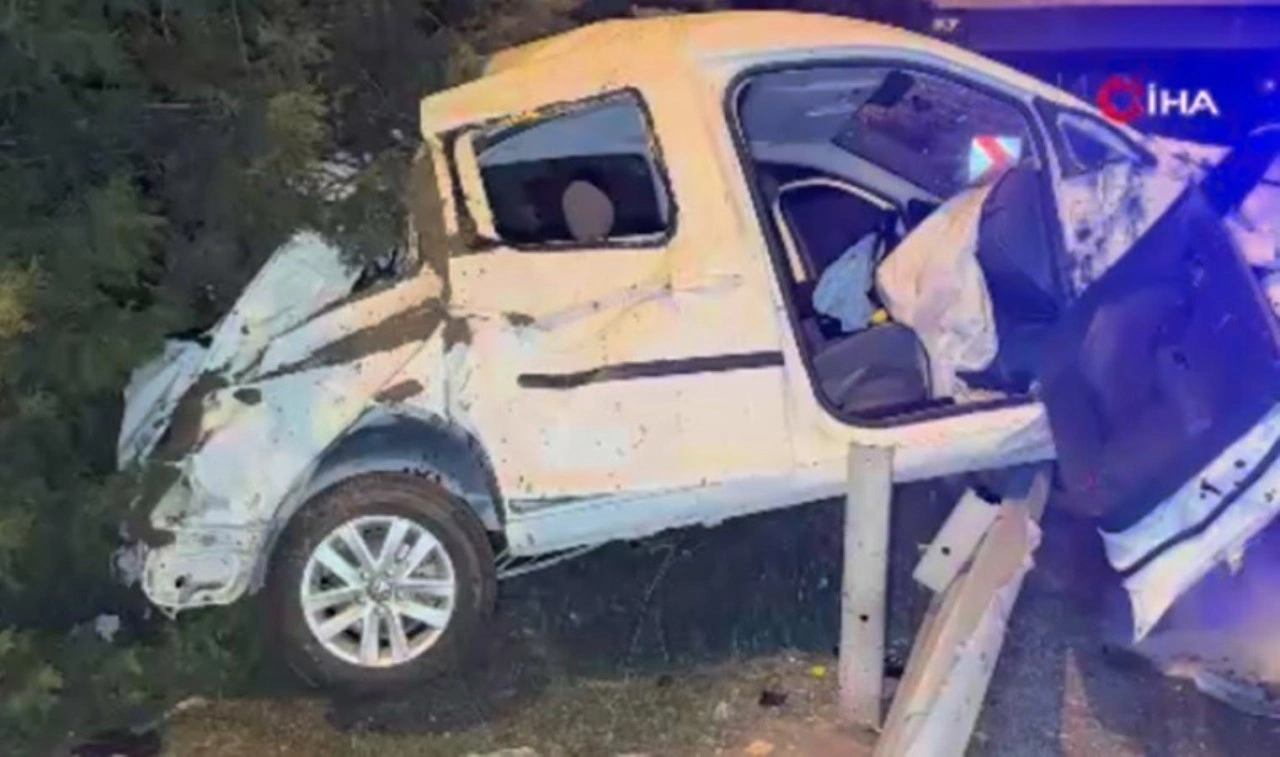 Bariyerleri aşarak taklalar atmaya başlayan araç ağaçlara çarparak refüjde asılı kaldı. Hafif ticari aracın karşı şerife geçmesini engelleyen ağaçlar faciayı önlerken, kazada araç sürücüsü ile birlikte yanında yolcu olarak bulunan N.İ. Ambulanslarla hastaneye kaldırıldı.