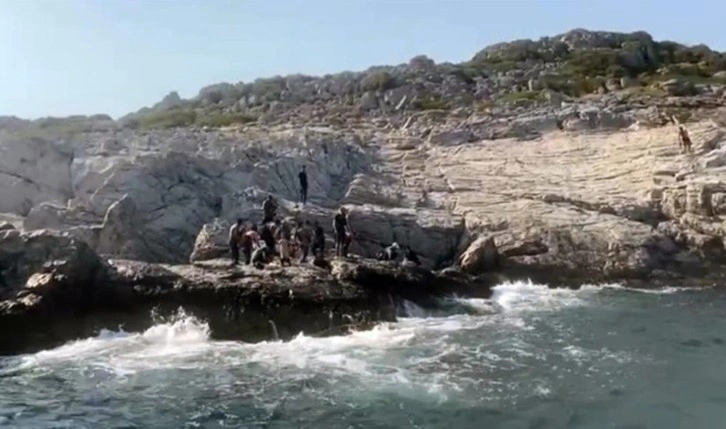 Görevlendirilen Sahil Güvenlik Botu ve Sahil Güvenlik Dalış Timi kayalar üzerindeki 20 kaçak göçmeni bota alarak kurtardı.