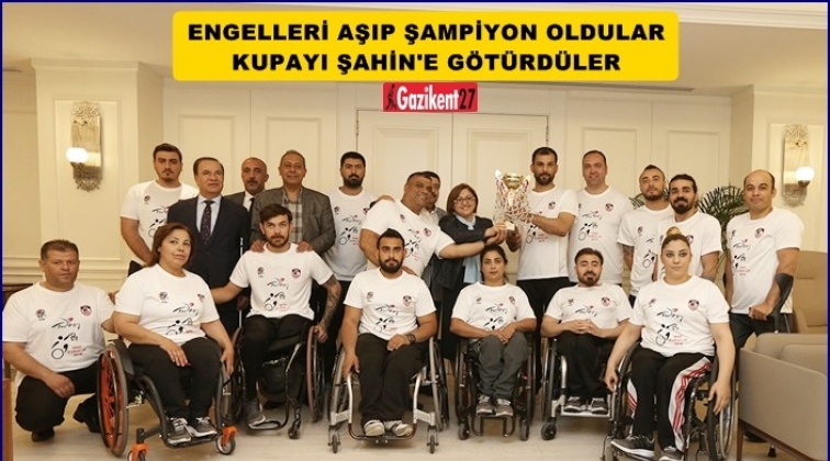 Gaziantep Büyükşehir Belediye Başkanı Fatma Şahin, Avrupa Kupası Grup Elemeleri'nde şampiyon olan Gazişehir Gaziantep Büyükşehir Belediyesi Tekerlekli Sandalye Basketbol Takımı’nı makamında ağırladı. Grup Elemelerini şampiyon unvanıyla tamamlayan engelli basketçileri, büyük bir gururla karşılayan Şahin’e kazanılan kupa armağan edildi.