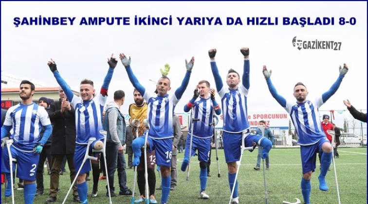 Sezonun ilk yarısını namağlup tamamlayan Şahinbey Ampute Futbol Takımı ligin ikinci yarısına da hızlı başlayarak İstanbul Özürlüler Ampute Futbol Takımı’nı kendi evinde 8-0 mağlup ederek, ligin ikinci yarısına hızlı bir başlangıç yaptı.