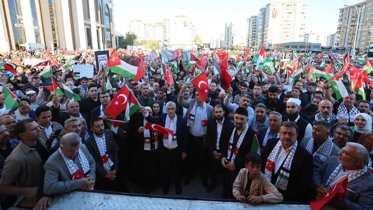 Gazze'de soykırım yaşadığını ifade eden Şahinbey Belediye Başkanı Mehmet Tahmazoğlu, "7 Ekim’den bu yana Gazze’de bir insanlık dramı yaşanıyor, bir katliam yaşanıyor. 67 bin Filistinli kardeşimiz şehit oldu. 200 binden fazla yaralı kardeşimiz var. Şehit olanların 3’te 1’i çocuk, kadın ve yaşlıydı. Savaşın bir hukuku var ama zalim İsrail ne hukuk ne hak tanıyor. İsrail, Filistinli kardeşlerimizi sadece bombalar altında ezmeyip aynı zamanda açlığa mahkum etti. Gazze'deki kardeşlerimiz imanlarıyla mücadele verdiler. Allah Gazze’deki kardeşlerimizden razı olsun. Hem yoklukla hem savaşla mücadele ettiler. Evleri yıkıldı, camileri yıkıldı, hastaneleri yıkıldı. Ama asla taviz vermediler, vatanlarını terk etmediler. Biz onlardan razıyız, Allah da onlardan razı olsun. Biz de burada duruşumuzu ve tarafımızı belli etmek adına toplandık. Gazze’deki kardeşlerimizin yanında olduğumuzu ifade ediyoruz. Allah onlardan, şehitlerimizden razı olsun. Ben inanıyorum ki zafer Gazzelilerin, Filistinlilerin olacak. Çünkü iki yıldır bombalamalara rağmen, aç bırakılmalarına rağmen teslim olmadılar, mücadelelerini sürdürdüler ve sonunda başta İsrail ve Amerika olmak üzere hepsini masaya oturtmaya mahkum ettiler. Gazze şu anda şehitlerin kanlarıyla mis gibi kokarken Yahudiler için, Siyonistler için bir bataklık oldu. Rabbim inşallah zaferi hem Filistinli kardeşlerimize hem dünyadaki tüm Müslümanlara gösterecek. Yeter ki biz duruşumuzu bozmayalım, kardeşlerimizle birlik olalım" dedi.