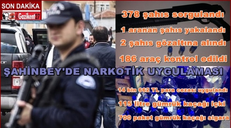 Gaziantep'in Şahinbey ilçesinde yapılan narkotik uygulamalarında 378 şahıs sorgulandı. Aranan 1 kişi yakalanırken, 2 kişi de gözaltına alındı.