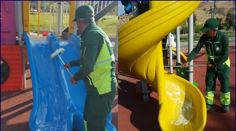 Özellikle yaz aylarında sıcak hava ile birlikte spor alanları ve çocuk oyun parklarında elden ele çeşitli mikroplar taşınabiliyor olması nedeniyle, bulaşıcı hastalıkların çoğalmaması ve vatandaşların enfeksiyon hastalıklarına yakalanmaması için parklarda temizlik çalışmaları yapılıyor.