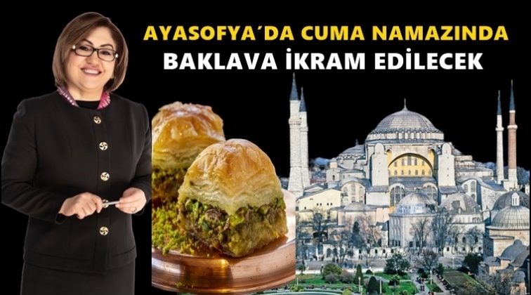 Gaziantep Büyükşehir Belediye Başkanı Fatma Şahin, yeniden ibadete açılan Ayasofya Cami’de 24 Temmuz’da kılınacak ilk Cuma Namazı’nda Antep Baklavası ikram edileceğini söyledi.