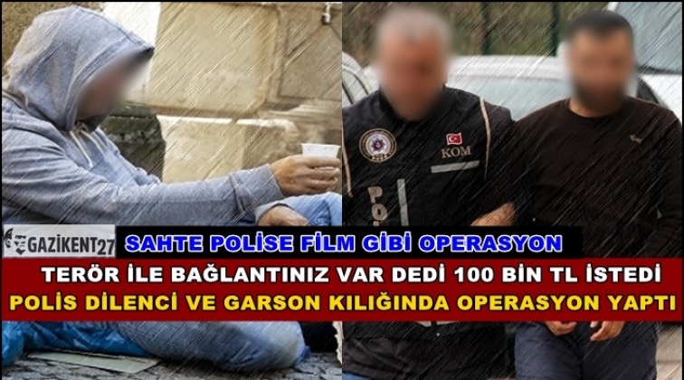 Gaziantep'te kendisini polis olarak tanıtarak bir çifti dolandırmak isteyen şahıs, polisin dilenci, garson ve seyyar satıcı kılığında yaptığı operasyonla yakalandı.