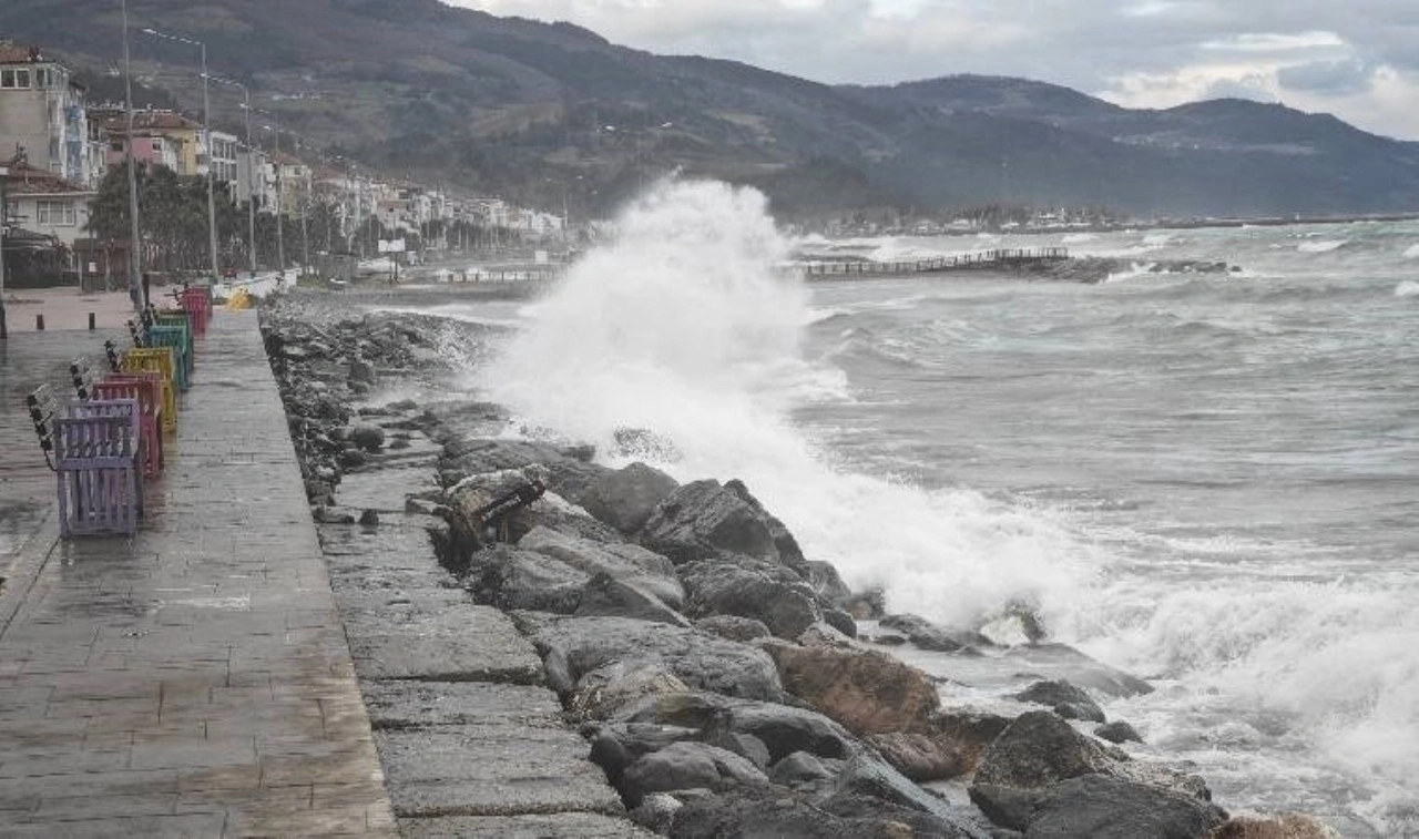 Kentte dünden bu yana etkisini sürdüren kuvvetli rüzgar nedeniyle denizde yüksekliği 2 metreye ulaşan dalgalar oluştu.