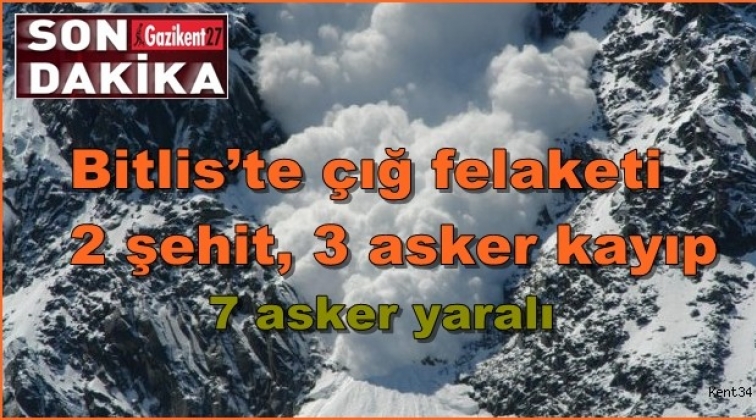 Bitlis'te meydana gelen çığ felaketinde ilk belirlemelere göre 2 asker şehit oldu, 3 asker kayıp, 7 askerimiz ise yaralandı.