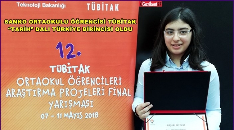 TÜBİTAK tarafından düzenlenen “12’nci Ortaokul Öğrencileri Araştırma Projeleri Yarışması”nda SANKO Ortaokulunun “Tarih” dalındaki projesi Türkiye birincisi oldu.