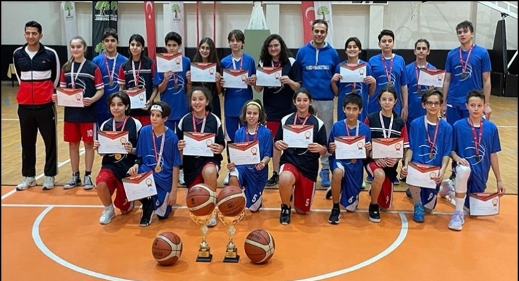 Atatürk Spor Salonu’nda düzenlenen müsabakalarda, Ecrin Yılmazlar, Cansu Duman, Nur Zorkirişci, Zeynep Polat, Zehra Nakıpoğlu, Göksu Eralap, Ela Derici ve Elif Ciğerli’den oluşan SANKO Okulları Kız Basketbol Takımı birincilik kupasını kucakladı.