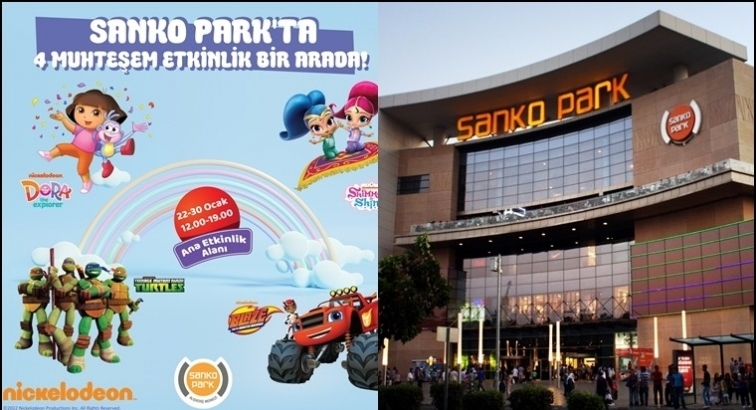 Çocukların favori çizgi film kahramanları 22-30 Ocak tarihlerinde 12.00-19.00 arasında çeşitli etkinlikler düzenleyecek. Sanko Park Alışveriş Merkezi ana atriumda ücretsiz düzenlenecek etkinlikte, ‘‘Nickelodeon Gaming Zone XL’’ alanında Dora, Ninja Kaplumbağalar, Shimmer & Shine ve Blaze sevenleriyle buluşacak.