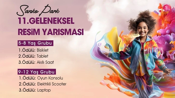 Gaziantep’in yaşam alanı Sanko Park Alışveriş Merkezi, 23 Nisan Ulusal Egemenlik ve Çocuk Bayramı’na özel ödüllü resim yarışması düzenliyor.
