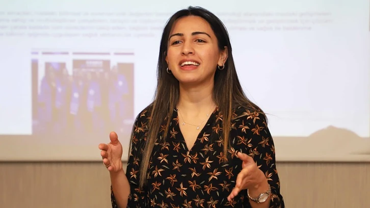 Sağlık Bilimleri Fakültesi (SBF) Beslenme ve Diyetetik Bölümü’nden Arş. Gör. Ece Erözgür ise bölümde 4 ana bilim dalı kapsamında dersler verildiğini belirterek, bölümün akademik kadrosu, faaliyet alanlarını ve projelerini aktardı.
