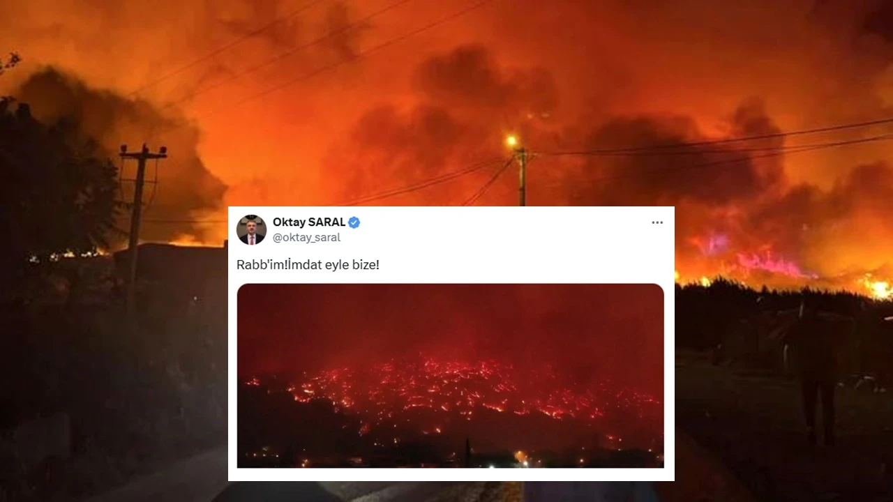 Türkiye dün akşam saatlerinde birden fazla kentte yangınlarla boğuştu. Bursa'daki yangın yerleşim yerlerine ulaşırken 2 köy boşaltıldı, yüzlerce kişi tahliye edildi. Cumhurbaşkanı Başdanışmanı Oktay Saral ise sosyal medyadan yaptığı paylaşımda, "Rabb'im!İmdat eyle bize!" paylaşımında bulundu.