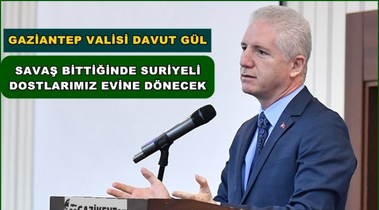 Gaziantep Valisi Davut Gül, “Suriyeli Sığınmacıların 5. Durum Analiz Çalıştayı”nda yaptığı konuşmada savaş bittiğinde Suriyeli misafirlerin ülkelerine döneceklerini kaydetti.