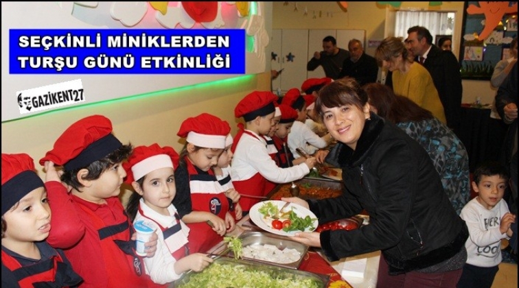 Özel Seçkin Koleji minikleri kış hazırlıklarının yapıldığı günlerde  öğretmenleri ile birlikte hazırladıkları turşu malzemeleriyle turşu yapımını öğrendi. Minikler kavanozlara dikkatli bir şekilde malzemeleri koyarken, turşunun neden yapıldığını da görme imkanı yakaladı. Hem üretime teşvik eden hem de günlük yaşam becerisi kazandıran etkinlikle minikler eğlenceli dakikalar yaşarken, kendi kurdukları turşu ile kışa hazırlanmanın da mutluluğunu yaşadı. Kavanozun kapağını sıkıca kapatan çocuklar, turşu olana kadar beklemek gerektiğini de öğrendi. Turşular olduktan sonra veliler okula davet edilerek turşu günü etkinliği düzenlendi.Seçkinli öğrenciler velilerine kendi elleriyle yaptıkları turşuları mercimekli köfte eşliğinde ikram etmenin heyecanı ve mutluluğunu yaşadılar.
