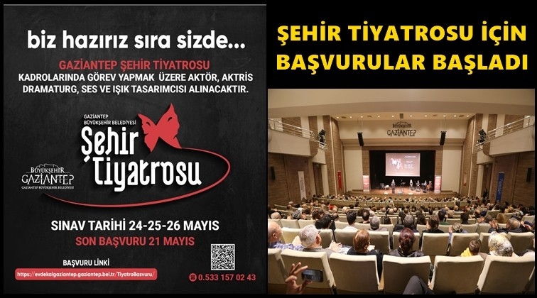 Tarih, sanat ve kültür değerlerinin korunması ve yaşatılması için çalışmalarını yürüten Gaziantep Büyükşehir Belediyesi, şehirde en çok istenilen sanat kültür etkinliğini belirlemek için yaptığı anket çalışması ile şehir tiyatrosu kurulması yönündeki sonuç sonrası hazırlıklara başladı. Bu kapsamda Büyükşehir Belediyesi, Şehir Tiyatrosu’nda görev alacak sözleşmeli aktör, aktris, dramaturg, ses ve ışık tasarımcısı için başvuru alımının startını verdi. Gaziantep Büyükşehir Belediyesi resmi internet sitesi üzerinden belirtilen formlar doldurularak gerekli belgeleri dijital ortamda yüklenerek başvuru yapılabilecek.