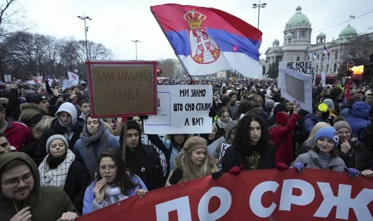 Sırbistan'da tren istasyonunda beton sundurmanın çökmesi sonucu 15 kişinin öldüğü kazanın ardından hükümete tepkili öğrenciler, başkent Belgrad'daki Anayasa Mahkemesi önünde protesto düzenledi.