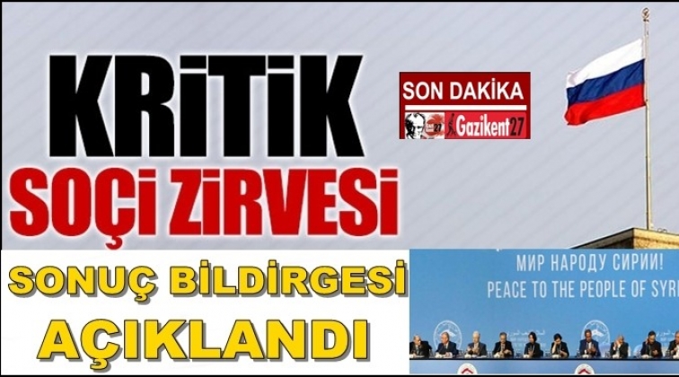 Suriye'de barışı sağlamak için Soçi'de bir araya gelen taraflar günün sonunda deklarasyon yayınladı.