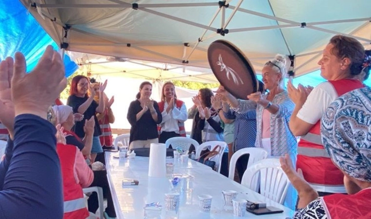 Sol Feminist Hareket, Polonez işçilerinin Çatalca'da bulunan direniş alanını ziyaret etti. Kadınlar alana "yaşasın kadın dayanışması, yaşasın sınıf dayanışması" yazan pankartla girdi.