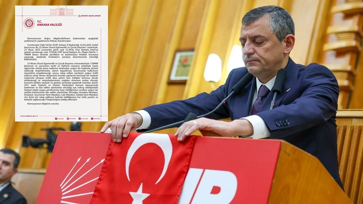 Son dakika haberine göre, Ankara Valiliği, CHP’nin 23 Nisan’da TBMM önünde yapmayı planladığı konuşma ve ardından Anıtkabir yürüyüşüne izin verilmediğini açıkladı.