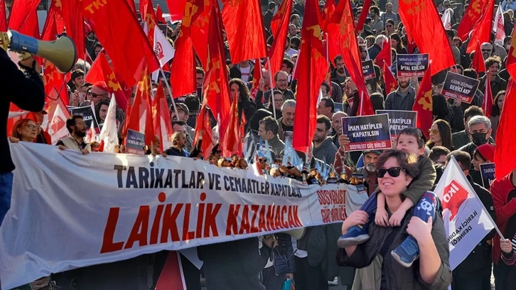 Türkiye Komünist Partisi, Devrim Hareketi, Sol Parti, Türkiye Komünist Hareketi'nin ve çok sayıda aydın ve sanatçının çağrısıyla kurulan Sosyalist Güç Birliği, "Tarikat ve Cemaatler Kapatılacak, Laiklik Kazanacak" sloganıyla bir eylem düzenledi. Geçtiğimiz günlerde İsmailağa Cemaati’ne bağlı Hiranur Vakfı’nda 6 yaşındaki bir kız çocuğuna uygulanan sistematik istismarın ortaya çıkması üzerine gündeme gelen tarikat ve cemaatlerle ilgili tartışmaya, Kadıköy'de düzenlediği eylemle tepki gösteren Sosyalist Güç Birliği, çözümün bu yapıların tümden dağıtılması olduğunu savundu.