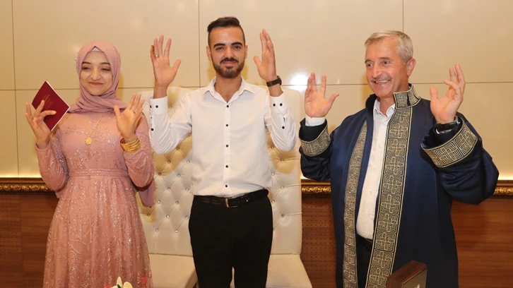Türkiye'nin en fazla nikâhını kıyan Şahinbey Belediyesi işitme engelli Ahmet Eren Polat ve Siyabe Avcı’nın hayatlarını birleştirdi.