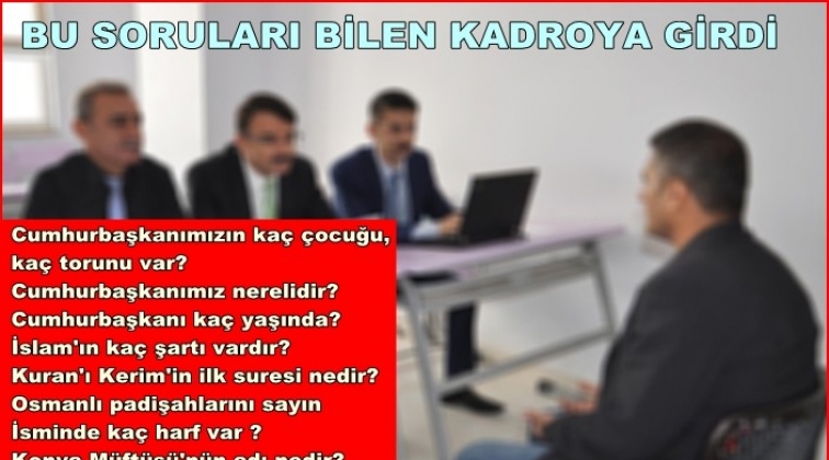 Taşeron işçilerin kadroya alınması için açılan sınavda adaylara, “Eşkıya Dünyaya Hükümdar Olmaz” adlı dizinin karakterleri, Cumhurbaşkanı Erdoğan’ın kaç torunu olduğu, Adalet Bakanının ismi gibi sorular yöneltildi.