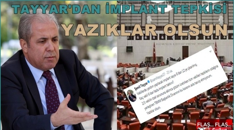 Sosyal medya hesabı twitterdan açıklama yapan Tayyar, "Vekillerde yardım yapılacak implant sayısı 6'dan 12'ye çıkarılmış. Kaç vekil 6'dan fazla implant taktırır? 2/3 vekilin özel sorununa aklınca çözüm üretirken tüm vekilleri tepkilerin odağına yerleştiren TBMM Başkanlık Divanının bu kararını asla tasvip etmiyorum. Yazıklar olsun." dedi.