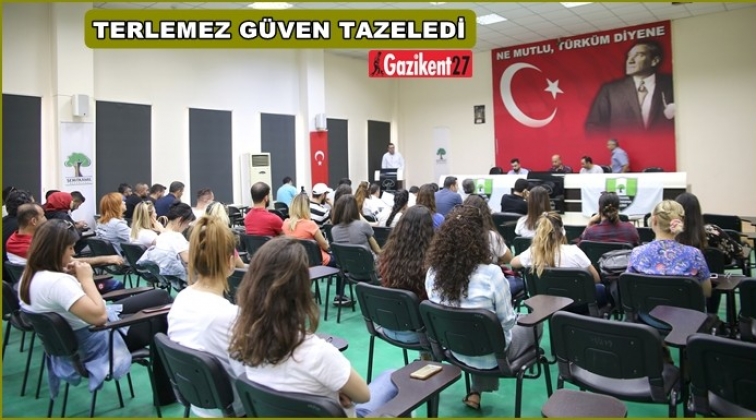Yeşil-siyahlı kulüpte göreve geldiği günden bu yana başarılı çalışmalara imza atan Kulüp Başkanı Memik Terlemez, gerçekleştirilen olağan genel kurulda yeniden kulüp başkanlığına seçildi. Şehitkamil Belediyesi Atatürk Kültür ve Spor Merkezi’nde gerçekleştirilen genel kurul sonrasında yönetim kurulu üyeleri ve kulüpte farklı branşlarda görevli antrenörlerle bir araya gelen Başkan Terlemez, yeni süreçte de Gaziantep ve Türk sporuna katkı sağlamaya devam edeceklerini söyledi.