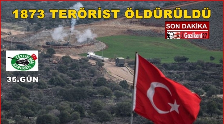 Türk Silahlı Kuvvetleri (TSK), Afrin'de yürütülen Zeytin Dalı Operasyonu'nda etkisiz hale getirilen terörist sayısı 1873 olarak açıkladı.
