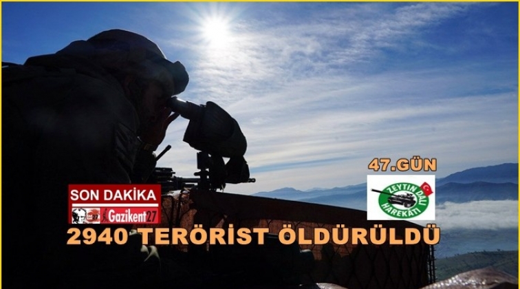 Türk Silahlı Kuvvetleri (TSK) Afrin'de başarıyla yürütülen Zeytin Dalı Harekâtı'nın 47. gününde etkisiz hale getirilen terörist sayısının 2 bin 940 olduğunu açıkladı.