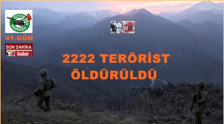 Türk Silahlı Kuvvetleri (TSK) Afrin'de yürütülen Zeytin Dalı Harekâtı kapsamında etkisiz hale getirilen terörist sayısının 2222 olduğunu açıkladı.