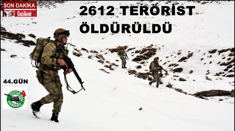 Türk Silahlı Kuvvetleri (TSK) Afrin'de yürütülen Zeytin Dalı Harekatı kapsamında etkisiz hale getirilen terörist sayısının 2612 olduğunu açıkladı.